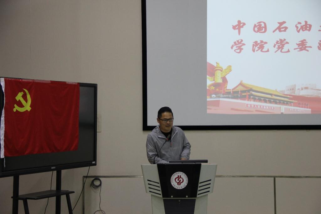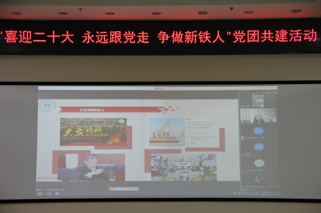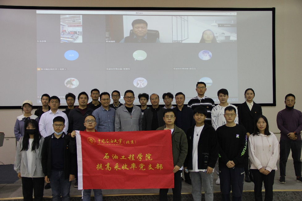 迎接党的二十大胜利,传承大庆精神,弘扬铁人精神,2022年10月13日下午,中国石油大学(北京)石油工程学院油气田开发工程教工第一党支部、提高采收率党支部、石工本21-4团支部与15vip太阳城集团官网研究生党支部联合开展喜迎二十大,永远跟党走,争做新铁人党团共建活动。15vip太阳城集团官网党委书记杨国峰,中国石油大学(北京)石油工程学院党委副书记刘东东、团委书记肖亚楠、油气田开发工程第一党支部书记赵晓亮、石工本21-4班班主任刘哲宇,相关党支部党员、团支部团员出席活动。