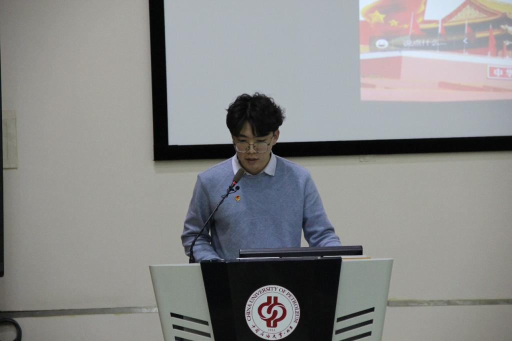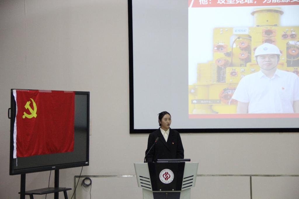 中国石油大学(北京)石工本21-4团支部书记李博宁开展题为弘扬铁人精神,赓续红色血脉的主题宣讲。她讲述了三代铁人接续奋斗为祖国献石油的感人故事,分享了中石大克拉玛依校区118名毕业生践行习近平总书记的重要回信精神,坚定人生选择,赓续老一辈石油人的红色基因,为石油事业贡献青春力量,以自己的实际行动不断弘扬铁人精神的故事,同时她号召更多的中石大学子矢志奋斗,砥砺前行,投身祖国石油事业。