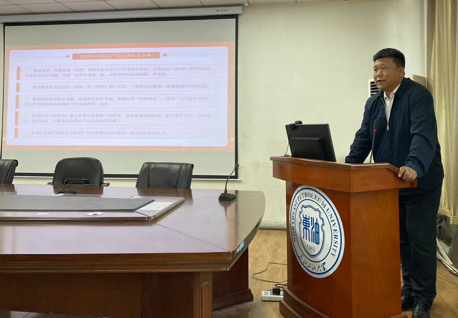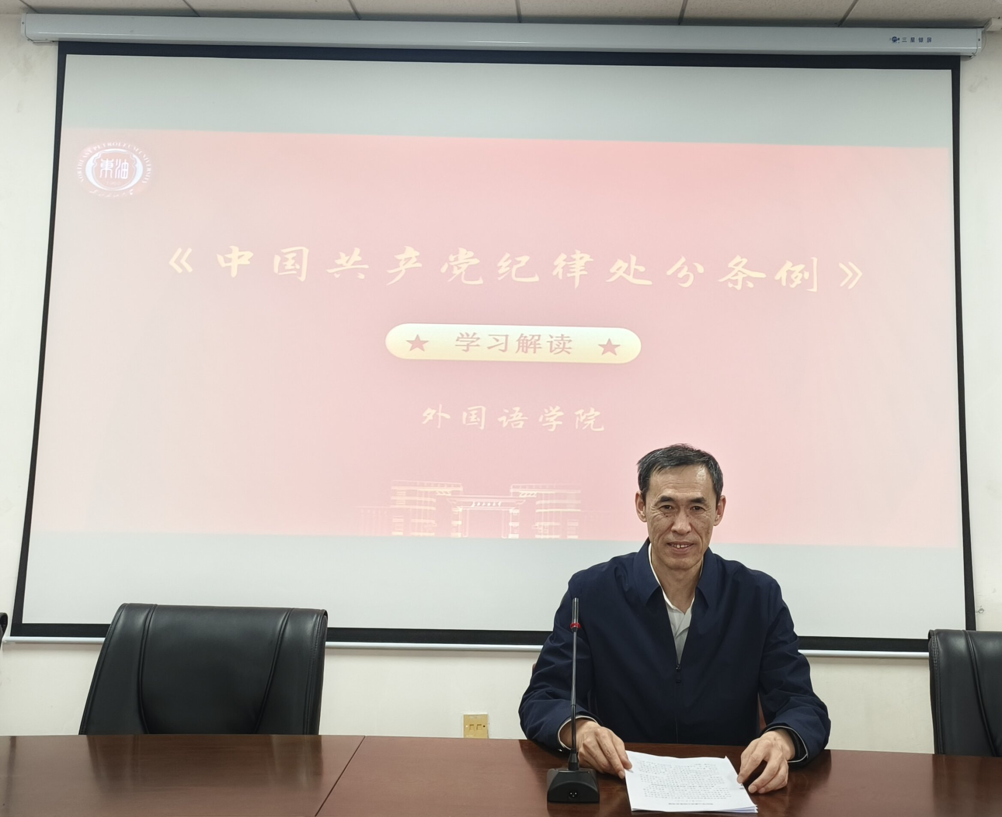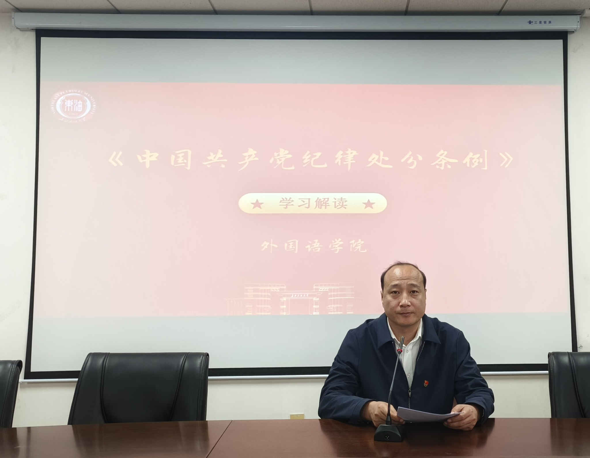 为深入学习贯彻习近平总书记关于党纪学习教育的重要讲话和重要指示精神,推进学校党纪学习教育走深走实,5月24日,学院党委理论学习中心组成员在1A536会议室召开《中国共产党纪律处分条例》对违反政治纪律行为的处分专项学习研讨;随后,学院党委书记杨国峰以《中国共产党纪律处分条例》学习解读为题,在1A118会议室为学院师生党员讲授专题党课。