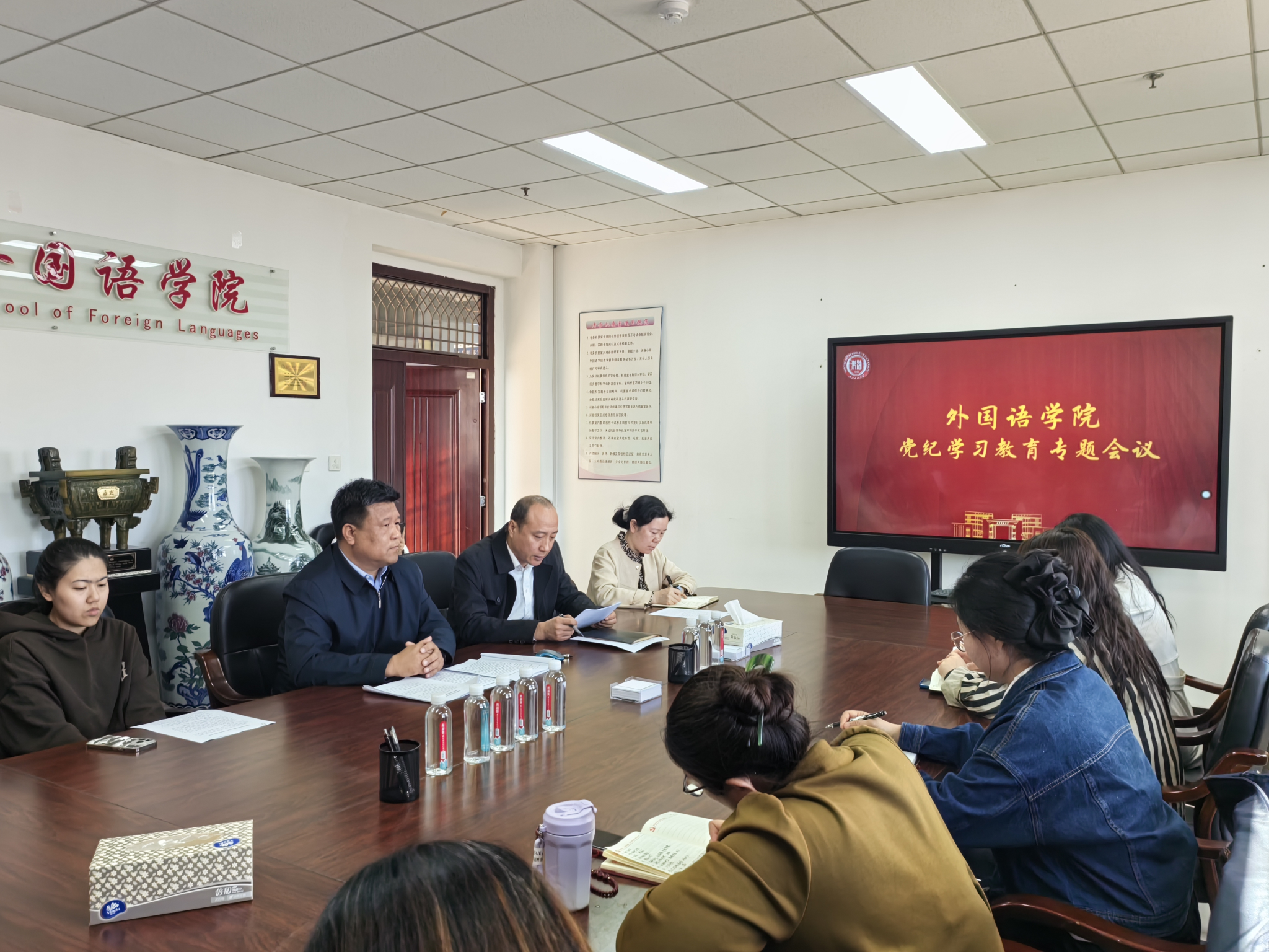 学院院长乔洪亮传达学校《关于在全校开展党纪学习教育的实施方案》,学校党委书记付晓飞在启动工作会议上的讲话精神。