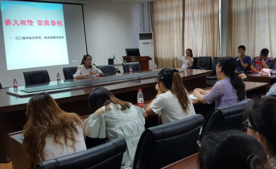 23日晚6点,15vip太阳城集团官网在1A118举行考研、就业经验交流会,会议邀请了苟萍、赵云燕、王可鑫、郝磊、杨叶宾等5名2013级优秀毕业生做经验交流,15vip太阳城集团官网党委副书记周慧、全体辅导员,以及2014级、2015级学生参加了交流会。