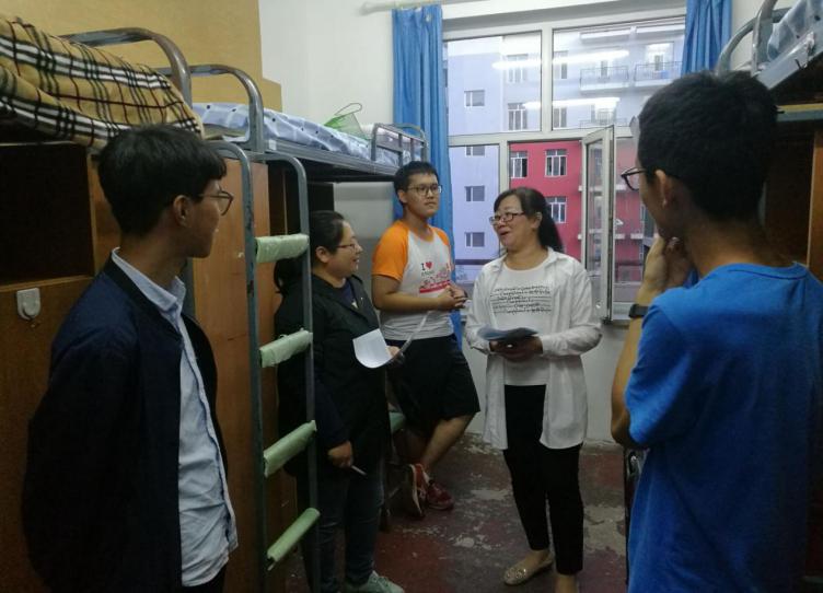 周慧副书记和任珍珍老师在新生报到后,一同深入学生宿舍走访,嘘寒问暖,了解学生的需求。