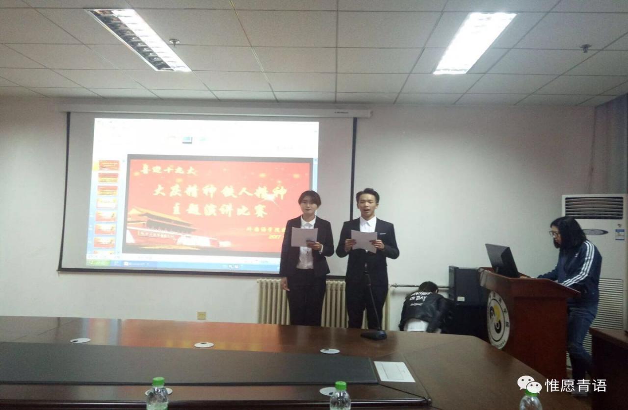 9月24日下午6点,由15vip太阳城集团官网团委承办的 “喜迎十九大•大庆精神 铁人精神”主题演讲比赛在1A118举行。