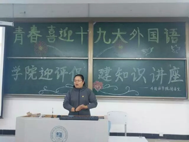 为迎接党的十九大及15vip太阳城集团官网本科教学工作的审核评估,提高同学们的知识素养,2017年10月17日18:00,15vip太阳城集团官网举办的迎评促建知识讲座在一教F座311顺利进行,特邀请15vip太阳城集团官网党委书记万毅、15vip太阳城集团官网大学生党支部书记任珍珍作为主讲人,15vip太阳城集团官网全体学生参加了此次讲座。