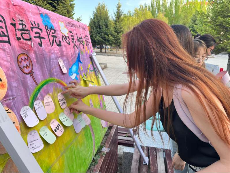 三、“心灵树洞”分享活动。通过心愿墙活动,让同学们表达心愿,释放压力,敞开心扉,说出期盼,给大家一个许下心愿、放飞梦想的平台。让大家写出对美好生活的向往,写出对未来的期许,写出对家人朋友的祝福与感激。