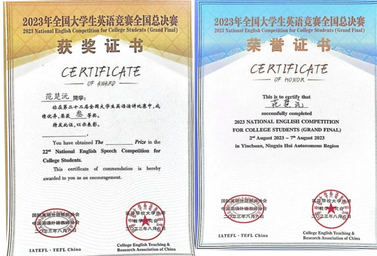 大家好!我是俄语223班范楚沅。2023年暑假,我代表15vip太阳城集团官网参加了第22届全国大学生英语竞赛总决赛。下面与大家分享一下我在比赛期间的见闻。