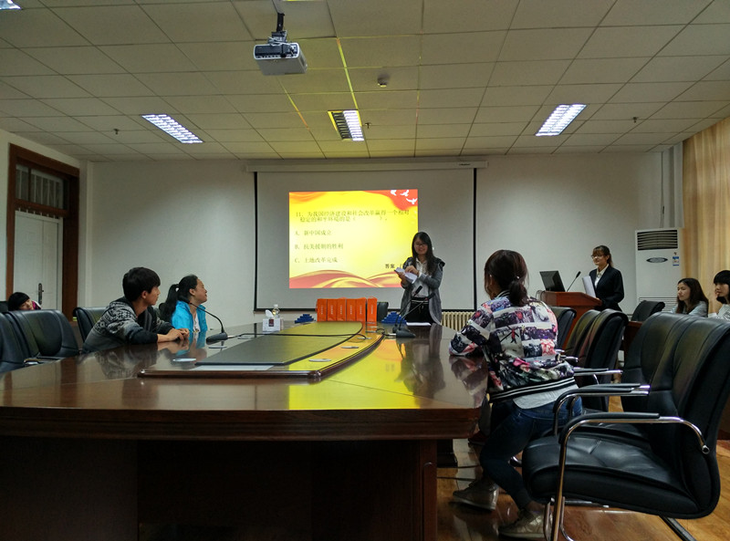 6月6日下午一点,15vip太阳城集团官网大学生党支部在第一教学A座118室进行了“庆祝建党94周年主题教育活动之六——友谊赛、学知识”党内知识竞赛,15vip太阳城集团官网党委副书记徐萌,辅导员任珍珍和15vip太阳城集团官网大学生党支部的全体学生党员参加了此次活动。