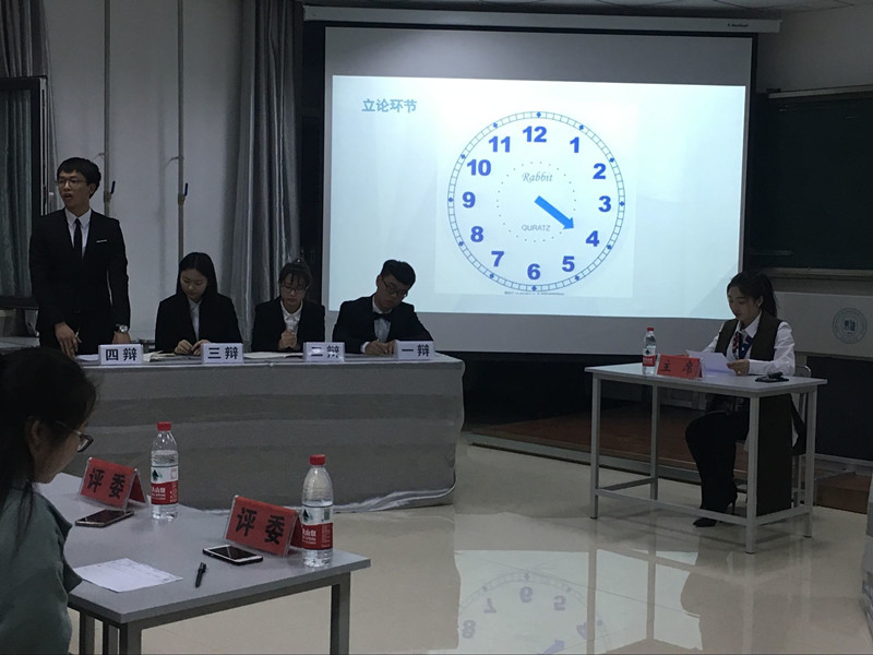 本次辩论赛分为表演赛和正式赛两部分。晚上六时,在主持人介绍完比赛规程后,表演赛正式开始。表演赛的选手由龚俊祥、陈馨宇、管潘君、刘泽组成,辩题是现场抽取,比赛不分胜负。