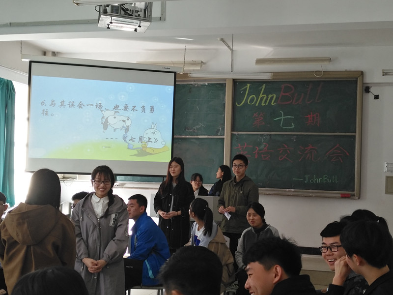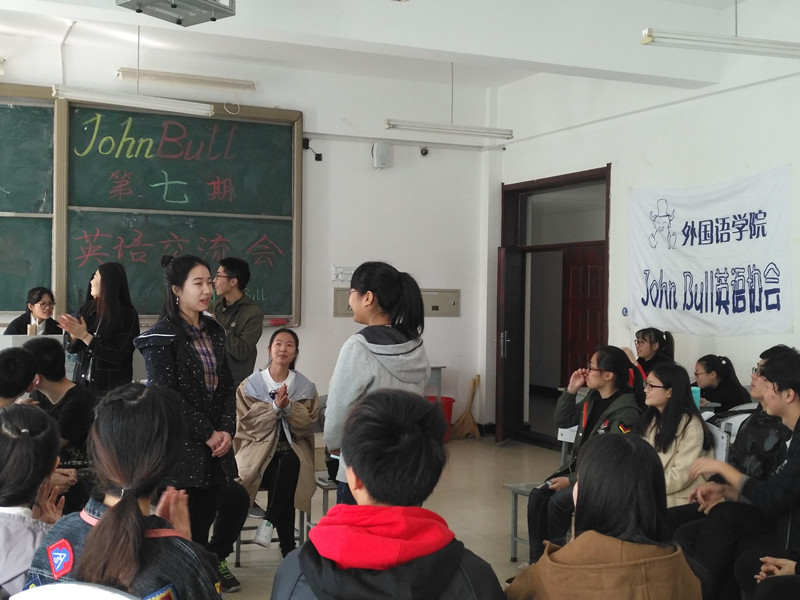 John Bull英语协会于2017年3月26日上午9点在1h215举办了第七届英语交流会。此次活动我们邀请刘洁学姐,康思萌学姐,李金池学长和李兴东学长担任我们比赛的特邀嘉宾。