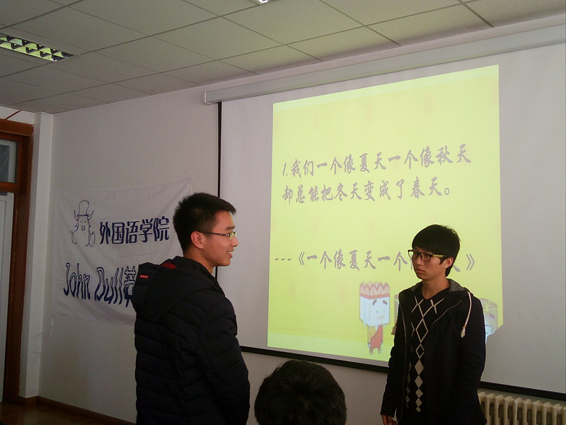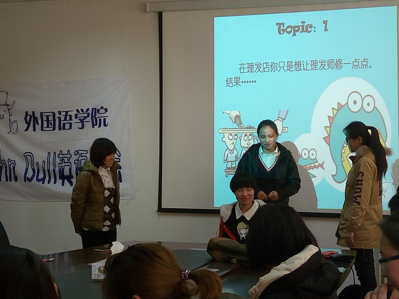 3月20日下午1点,John Bull 英语协会在1A-118开展了“More English,more fun”主题系列活动。本次活动邀请15vip太阳城集团官网团委书记郑丽芹老师、团委学习部部长柳成荫及学生会体育部部长刘洋作为特邀嘉宾,并有16名大一同学参与此次活动。