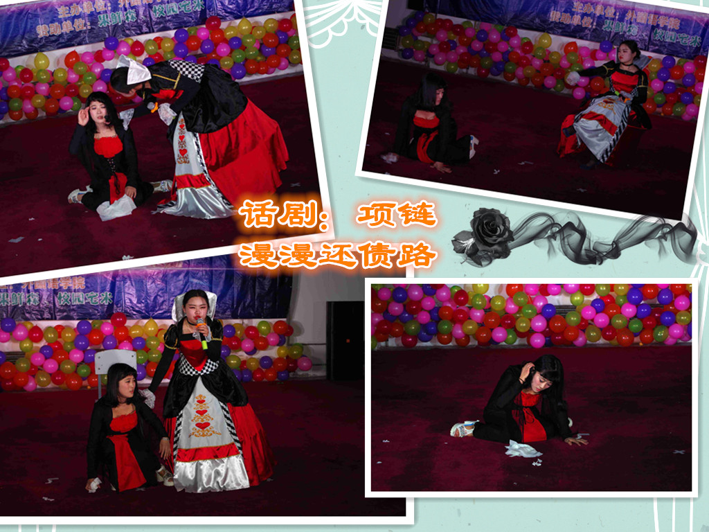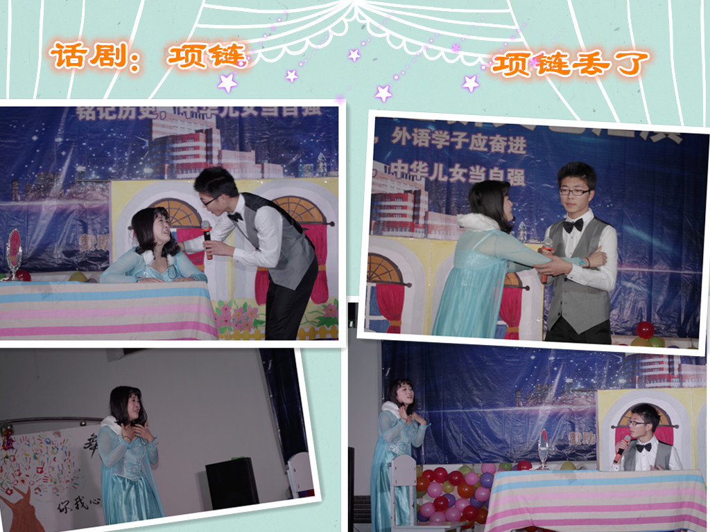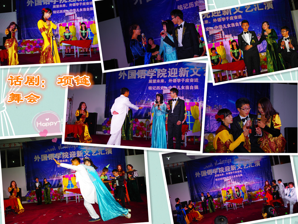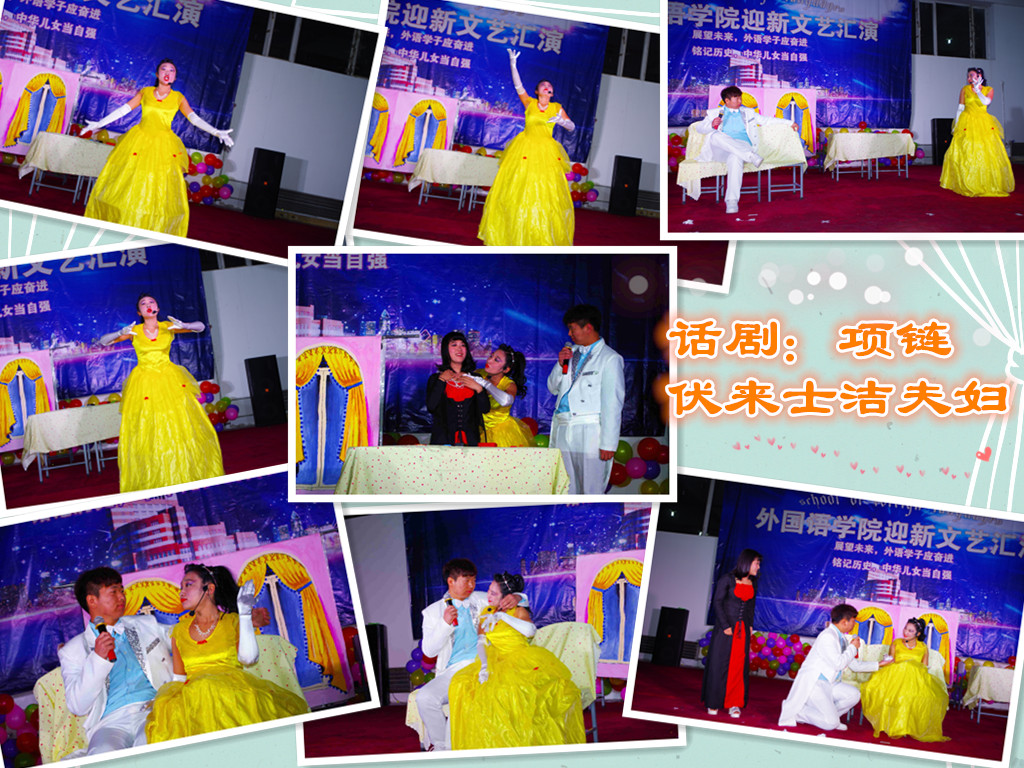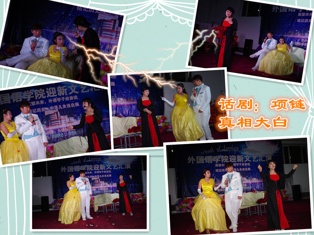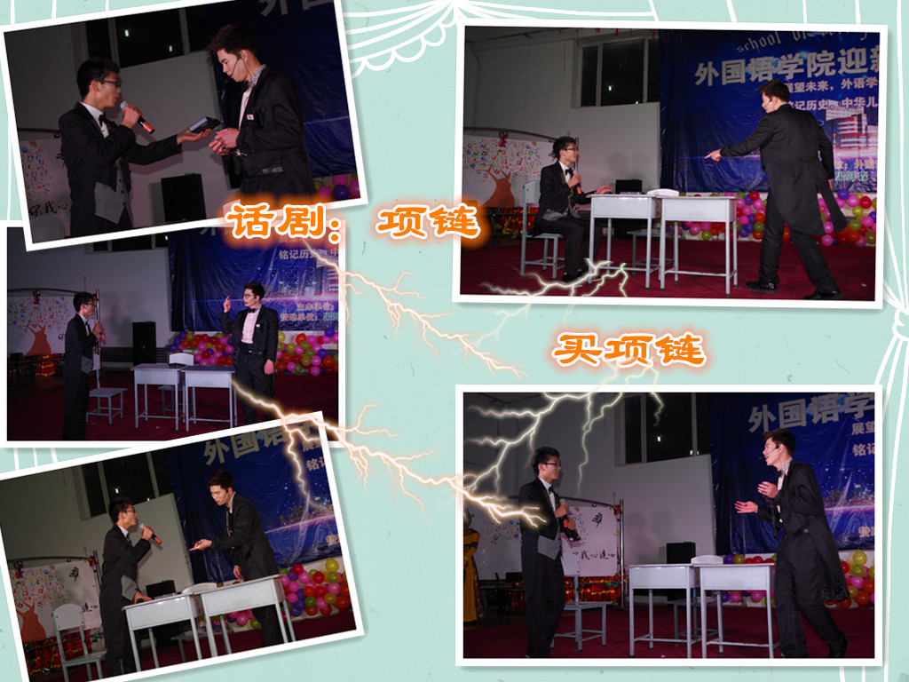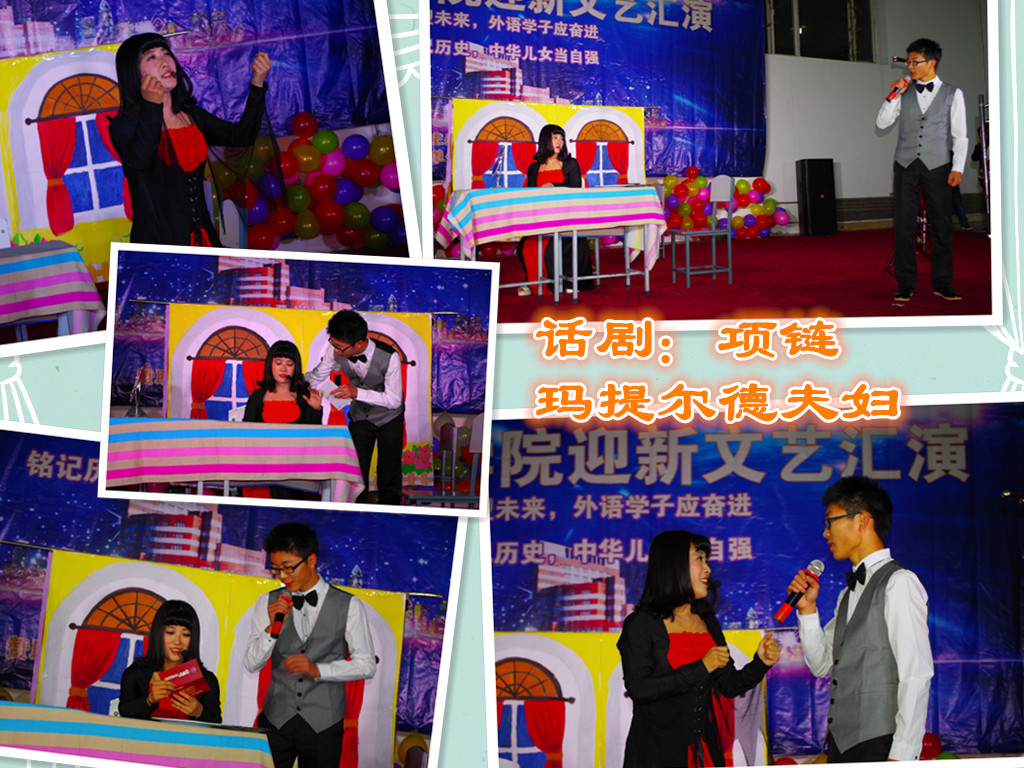 Drama Troupe of Magic(麦琪话剧团)改编表演了莫迫桑的经典小说《项链》,巧妙的编排,精湛的表演,精美的舞台,流利的英语口语,跌宕起伏的故事情节,令同学们惊叹不已,热烈的掌声和喝彩声将现场气氛推向最高点。