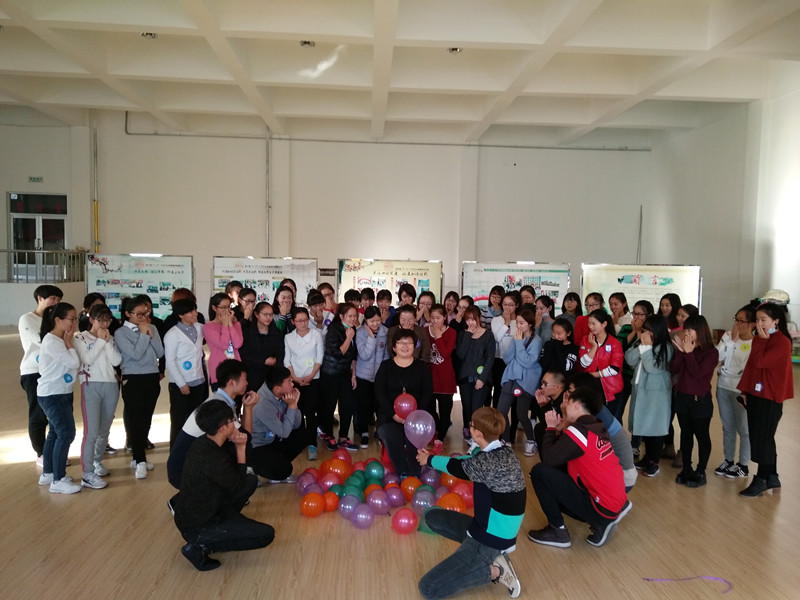 此次拓展训练主旨秉承长征精神,重点强化“团结协作”,包括三个大模块:破冰游戏、主体游戏、分享。由于参加训练的学生干部囊括三个年级,不同年级、不同部门之间的熟悉程度有限,所以安排了两个破冰小游戏,增进彼此的了解和熟悉。主体游戏安排了“背背佳”和“气球桥梁”。“背背佳”考验的是“团结就是力量”,首先是两人一组,背靠背席地而坐,不依靠手撑地的力量,只能依靠彼此的力量实现站立。两人一组成功后,挑战四人一组,然后是六人一组,十二人一组。在挑战过程中,同学们发现人数越多越容易实现,很好地收获了“人多力量大”的体验。“气球桥梁”设置了两个环节,极速列车和彩云追月,这个体验主要强化“协作”的作用,一个队伍里的每一个人都要配合到身边其他人的节奏才能完成,极大地考验了大家的协调能力,有的队伍一次就成功了,有的队伍却反复好多次,在一次次的失败中汲取教训,一遍一遍改变行进节奏,直至前后协调一致,终于到达目的地。同学们为自己坚持到最终胜利发出雷鸣般的欢呼。