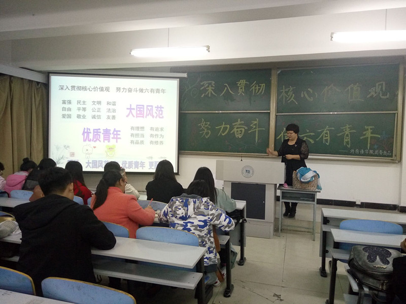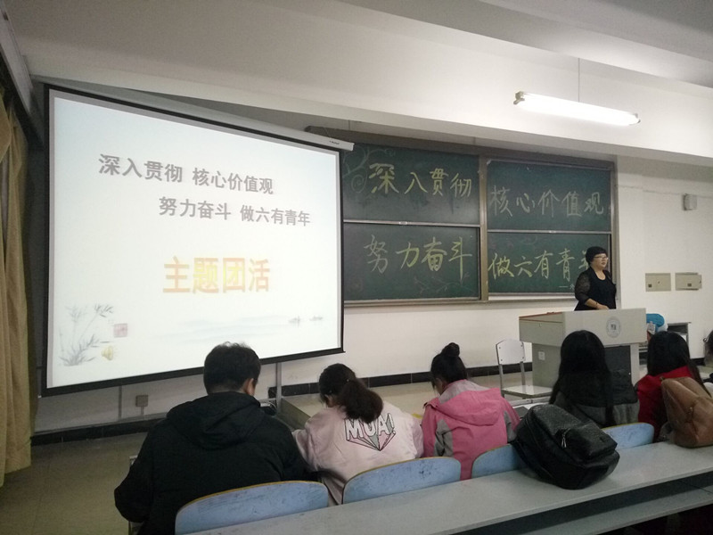 2016年10月16日晚6:00,15vip太阳城集团官网团委书记郑丽芹在1F311召开了光辉团校系列活动第十期——“深入贯彻核心价值观,努力奋斗做六有青年”的主题团活,全体学生干部参加了此次活动。