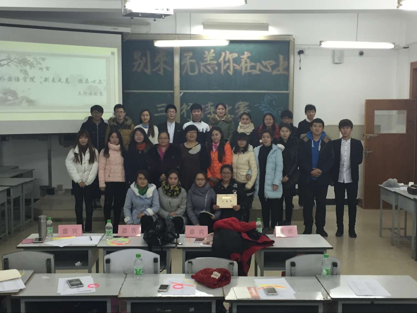 然后,在老师们的打分下,来自英语13-4班的于早竞同学,英语13-3班的李亭亭同学,英语15-1班的刘茜茜同学获得了本次三行诗比赛的一等奖。获得二等奖的同学分别是英语13-1班张天阳,英语13-4班臧雪,英语13-4班王莹,英语14-2班张佳璐,俄语14-1班王瀚清。获得三等奖的同学分别是英语13-2班郭思齐,英语14-3班费亚南,英语14-4班范日东,张清宇,徐博,张帆,俄语14-1班李杨。获得优秀奖的同学共有20名。 比赛的最后,各位老师对本次活动以及选手们的表现进行了点评,同时老师们也即兴赋诗了几行。