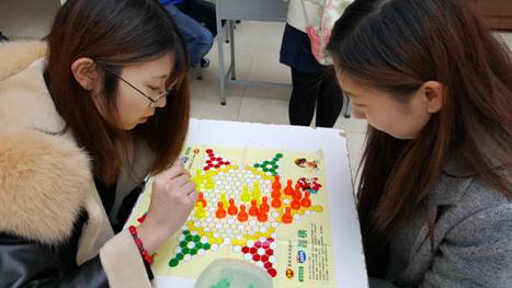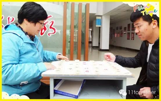 比赛过程中,象棋、跳棋、五子棋和斗地主四个区的选手们个个精神饱满,在棋牌场上“八仙过海,各显神通”,赛场情绪高涨。郑老师也受到现场气氛的感染,欣然加入了战局,与同学们切磋了一番。