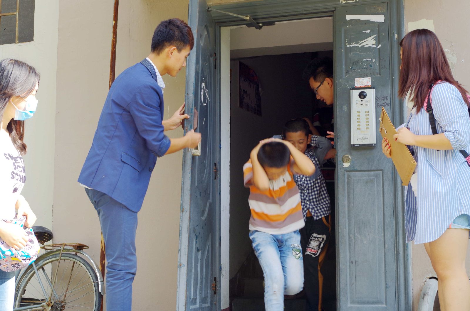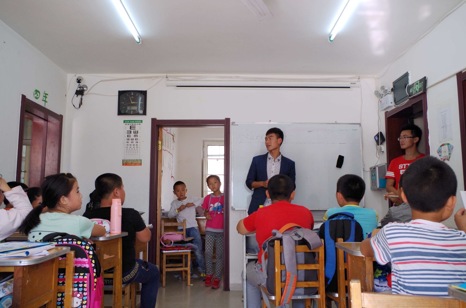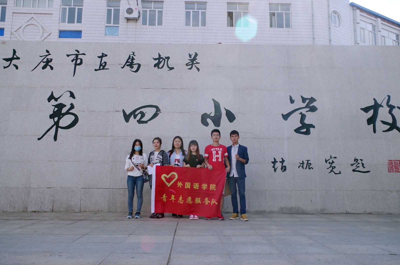 在大庆市机关四小,这里的小学生十分热情活泼。我们与负责老师说明来意之后,首先组织同学们进行了地震疏散演习。按照我们事先的部署和讲解,地震演习进行的井井有条,所有人员快速、安全的撤离了建筑物。然后我们的志愿者在教室内为同学们进行了一场安全教育讲座,同学们积极发言,认真聆听,十分配合。一系列活动结束后,我们大家亲切合影留念。