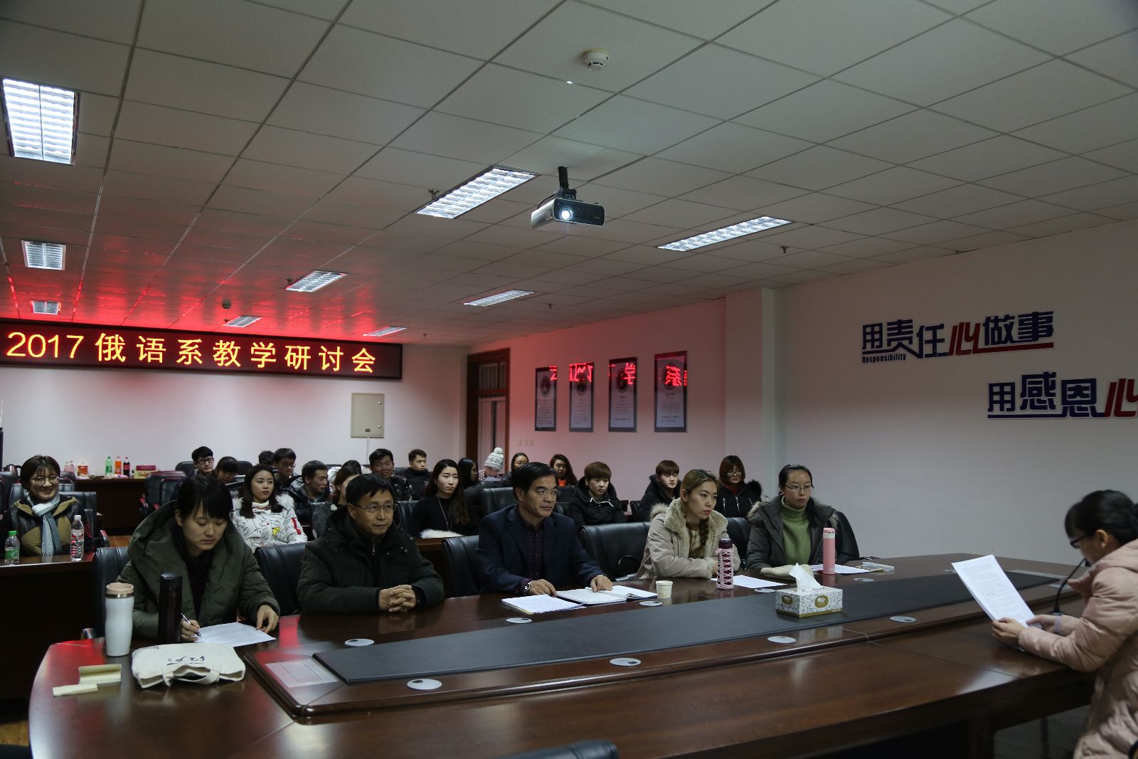 (通讯员 张晶)12月8日,俄语系在1A-118召开“创新教学方法”主题教学研讨会。俄语系全体教师、学生代表和部分俄罗斯留学生参加了本次研讨会。
