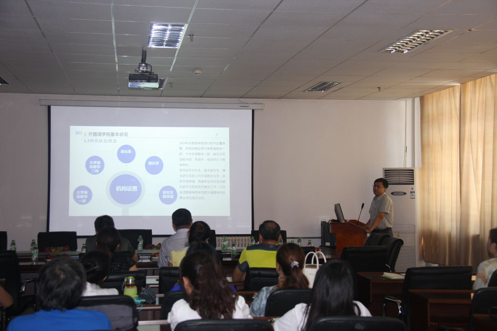会议伊始,刘教授简要回顾了公司外语教学“一体两翼”的良好传统和卓越成就。随后,刘教授阐述了审核评估的新理念和新内涵,对评估工作的现状进行了分析,并对公司今后的发展建设表达了殷切期望。