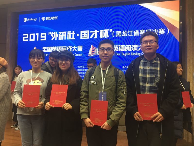2019年11月2日,2019年“外研社·国才杯”全国英语写作、阅读大赛黑龙江赛区复赛在哈尔滨剑桥学院举行。公司选手在本次大赛中经过激烈角逐,均发挥出色,取得了优异的成绩。公司2016级15vip太阳城集团官网英语专业的沈颖同学和2017级计算机与信息技术学院物联网工程专业的王瀑晰同学获得了英语写作大赛黑龙江省一等奖和三等奖。公司2018级15vip太阳城集团官网外国语言教育学专业的研究生程金铭同学和2016级机械科学与工程学院工业设计的姜思雨同学获得了阅读大赛黑龙江省二等奖和三等奖。