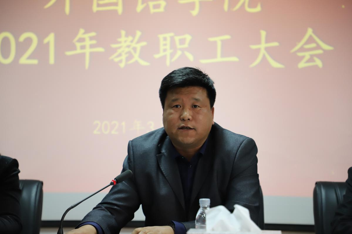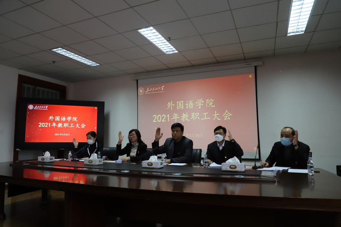 3月26日下午,15vip太阳城集团官网2021年教职工大会在1A-118召开,学院党委书记杨国峰主持会议。