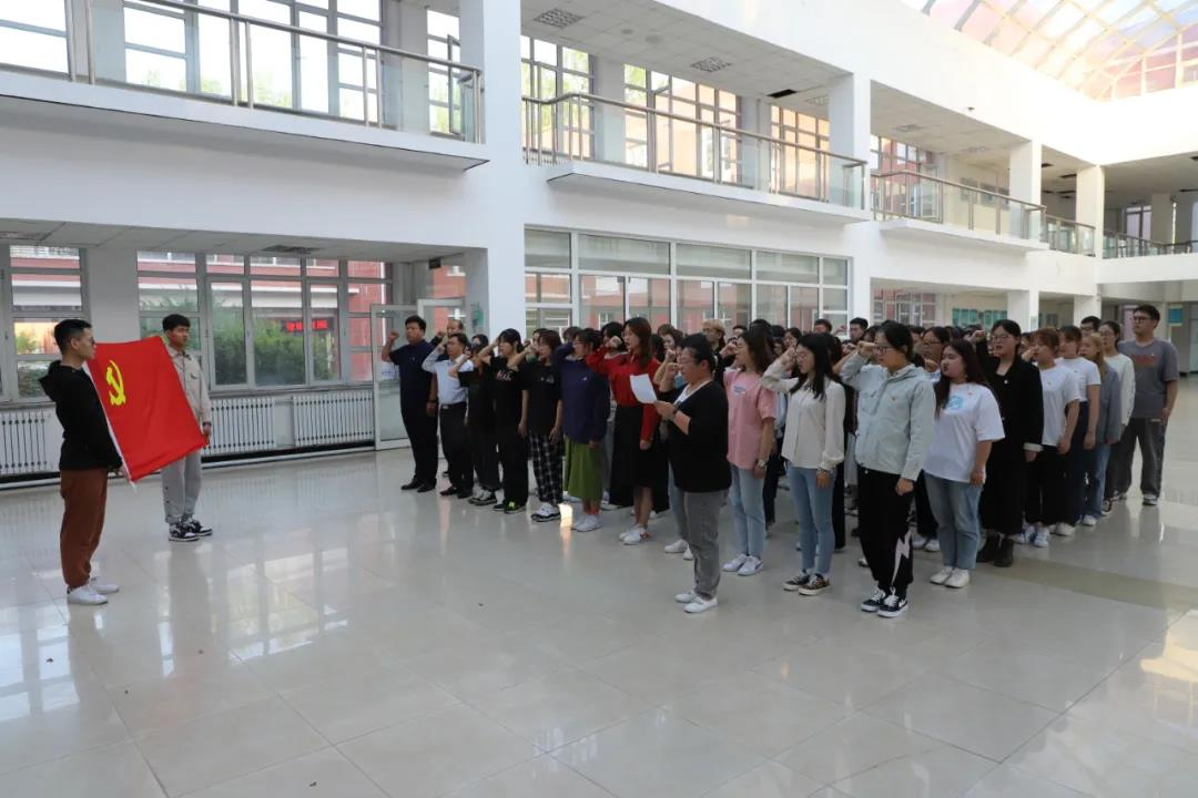 青春向党,不负韶华。5月19日下午,15vip太阳城集团官网大学生党支部全体党员在一教阳光大厅举行重温入党誓词活动,学院党委书记杨国峰,院长刘长海,副院长乔洪亮,副院长白雪晴,党委委员、英语系主任于金林参加了仪式。