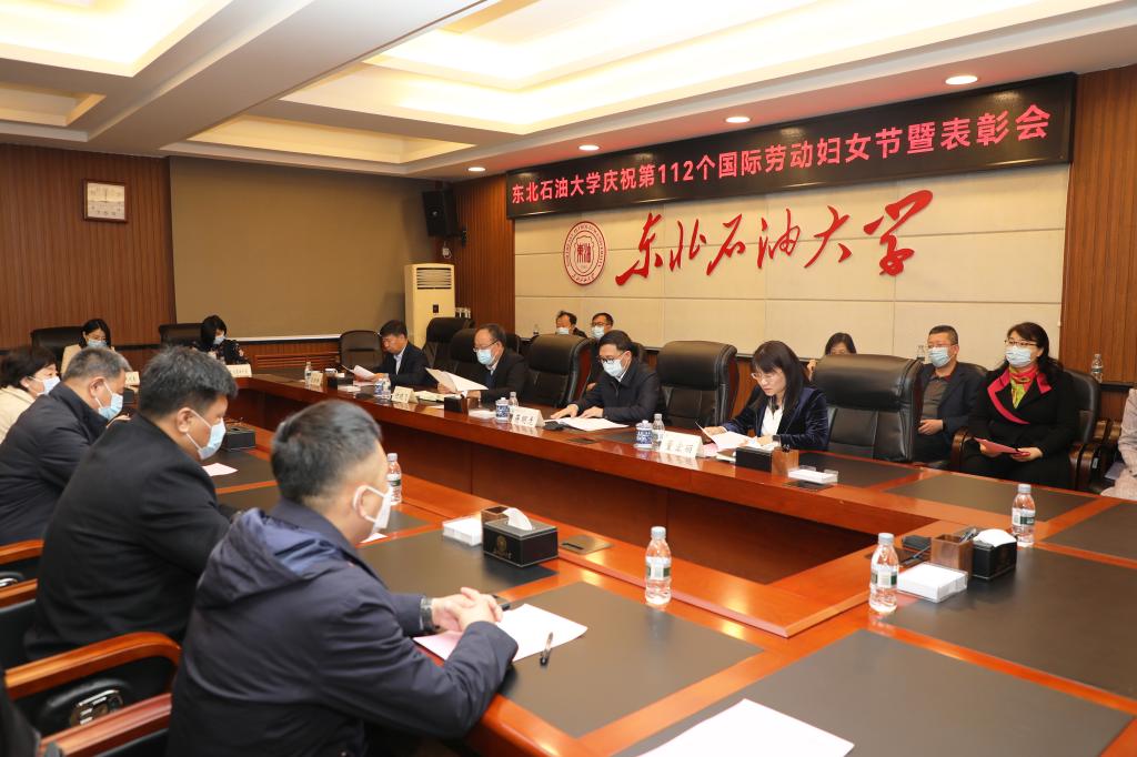 (通讯员 陈云 记者/摄影 王超颖)冰雪辞三月,校园春意浓。在第112个国际劳动妇女节来临之际,公司在机关五楼会议室举行庆祝第112个国际劳动妇女节暨表彰会。会议采取线上线下相结合的方式进行,校党委书记付晓飞,校长蒋明虎,副校长高洪峰、董宏丽,各二级单位相关负责人、部分教师代表参加会议。表彰会由高洪峰主持。