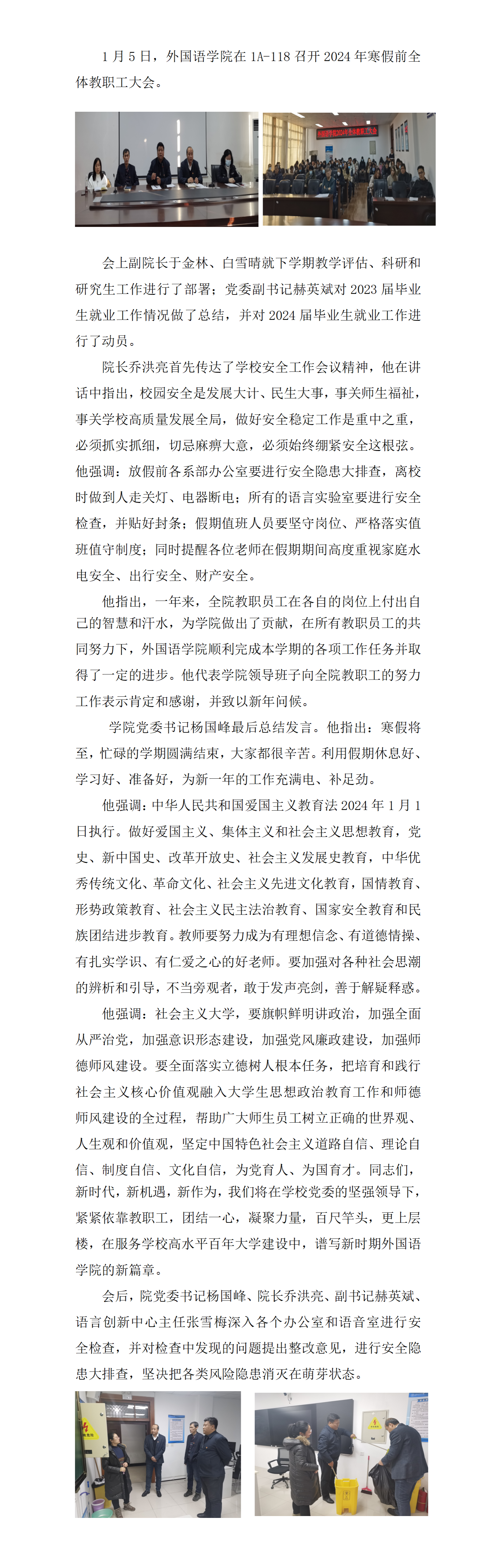 15vip太阳城集团官网召开2024年寒假前全体教职工大会