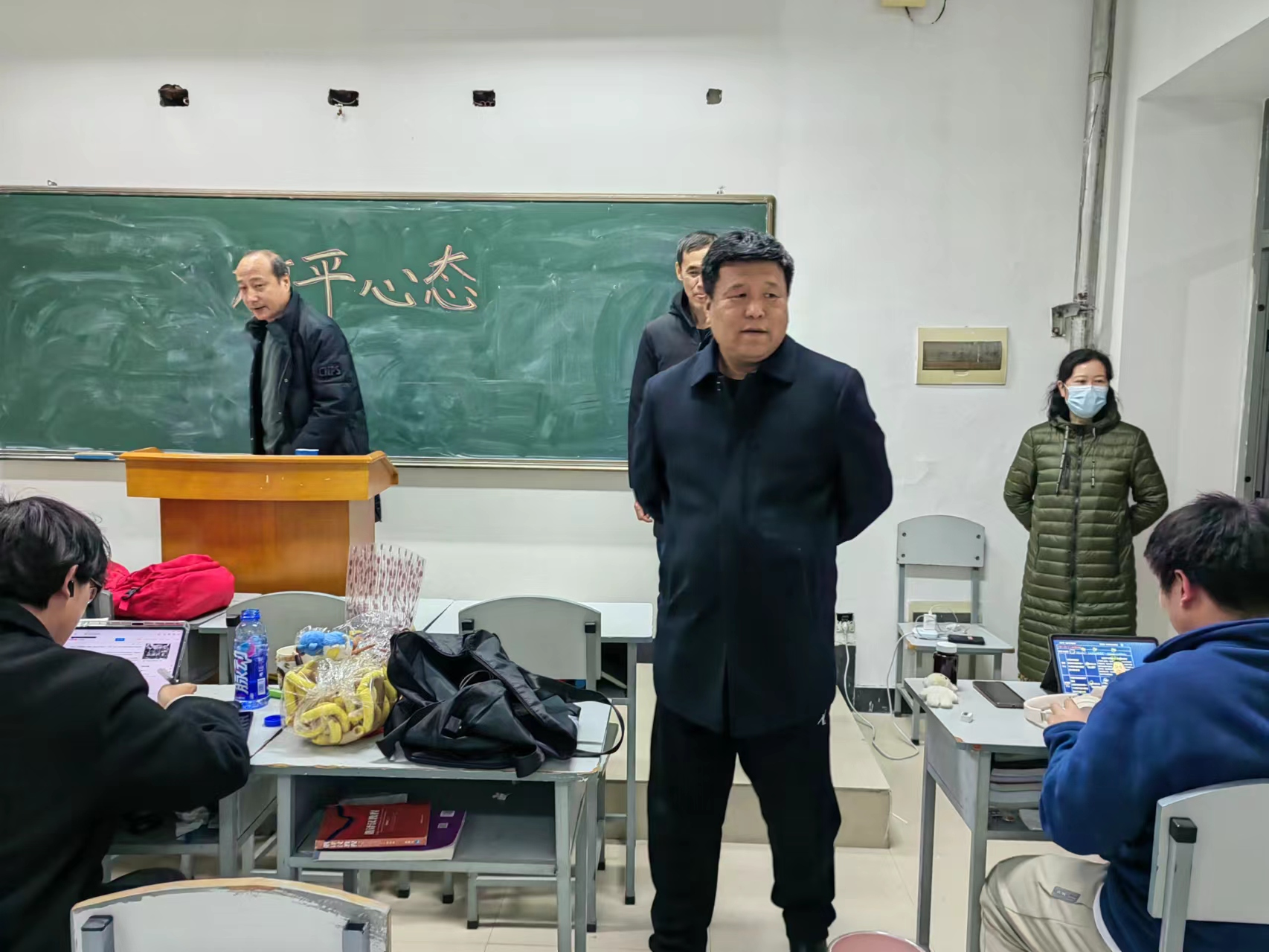 随后,领导们来到了大三学生的考研自习室,这里的学习氛围更加浓厚。领导们悉心了解了同学们的学习和生活状态,认真排查自习教室里可能存在的安全隐患问题,希望同学们能够调整好在校的学习和生活状态,合理作息,保持良好的精神面貌,注意劳逸结合,同时,询问同学们在学习、生活中遇到的困难。院长乔洪亮承诺,学院会联系相关部门,尽快完善自习室基础设施,为同学们提供更优质的学习条件。
