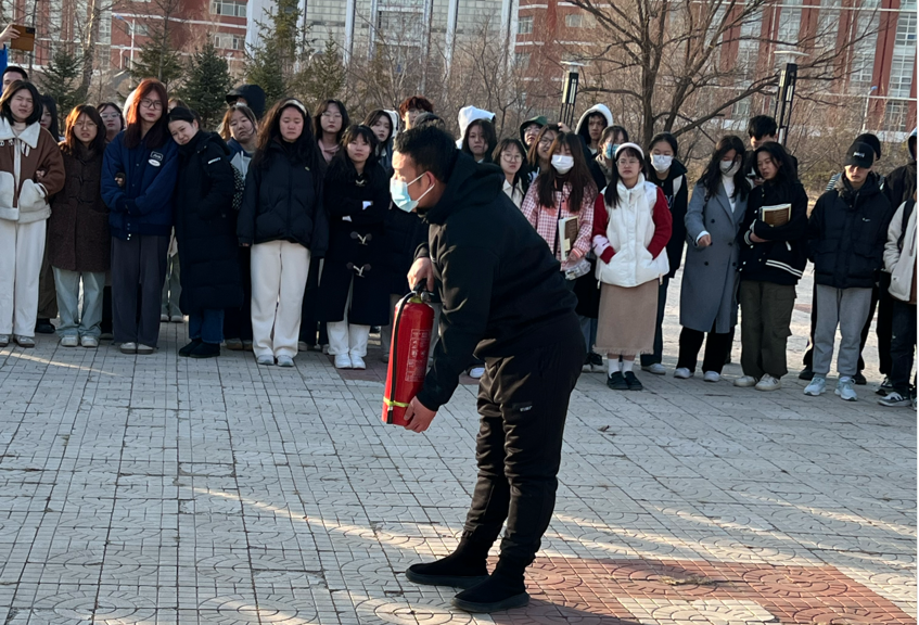 活动第三项,消防器械使用示范教学。公司邀请校武装部老师为同学们演示灭火器的使用方法,指导同学们亲自操作、练习。公司领导特别提醒同学们要注意宿舍、教学楼、食堂等公共场所灭火器的存放地点,做安全防火的“有心人”。
