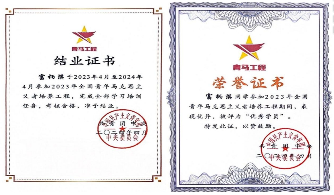 4月18日,青年马克思主义者培养工程全国班2023年度结业式暨2024年度开班式举行,15vip太阳城集团官网2021级研究生富柄淇作为2023年高校班学员顺利结业,并荣获“优秀学员”。