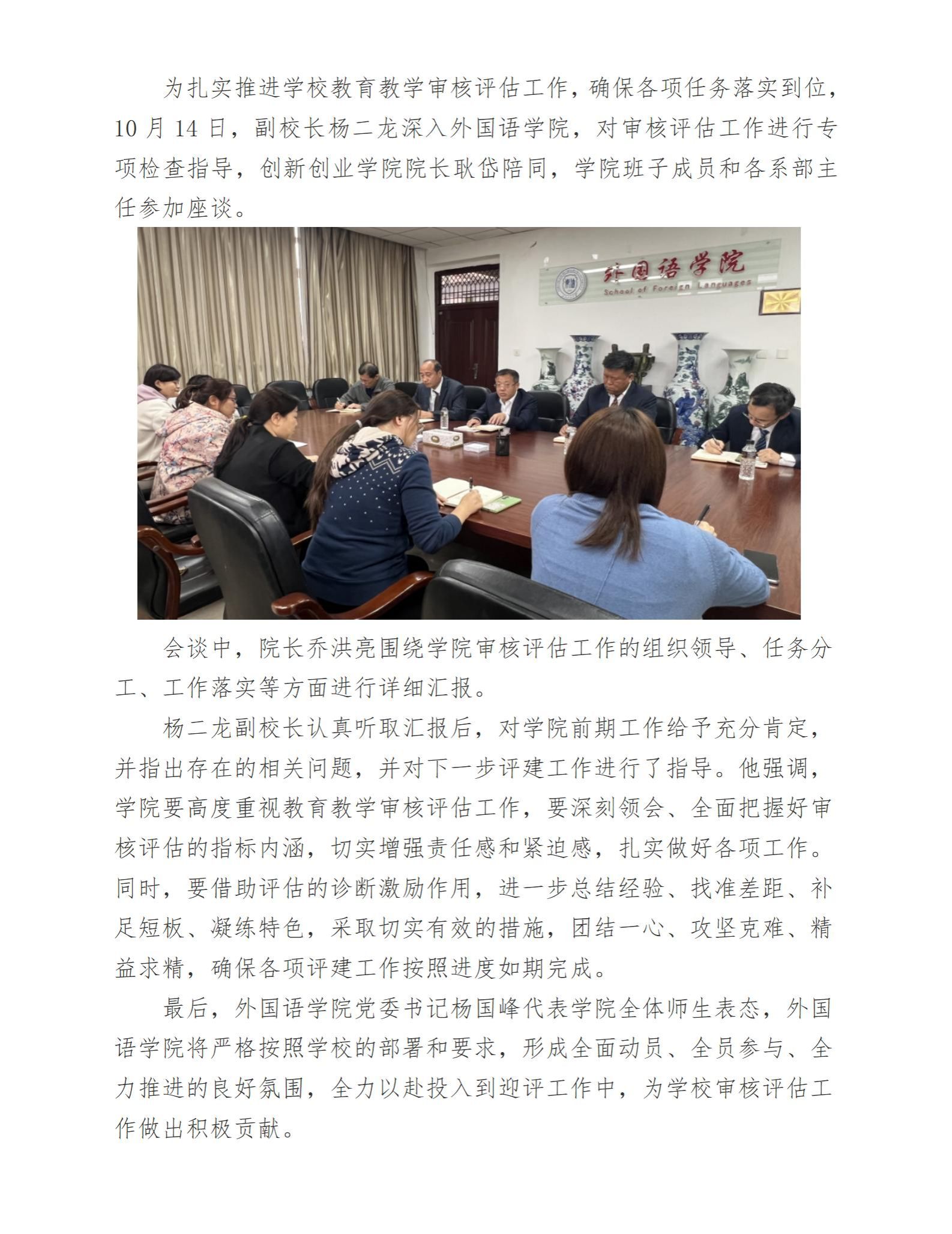 副校长杨二龙深入15vip太阳城集团官网检查指导审核评估工作