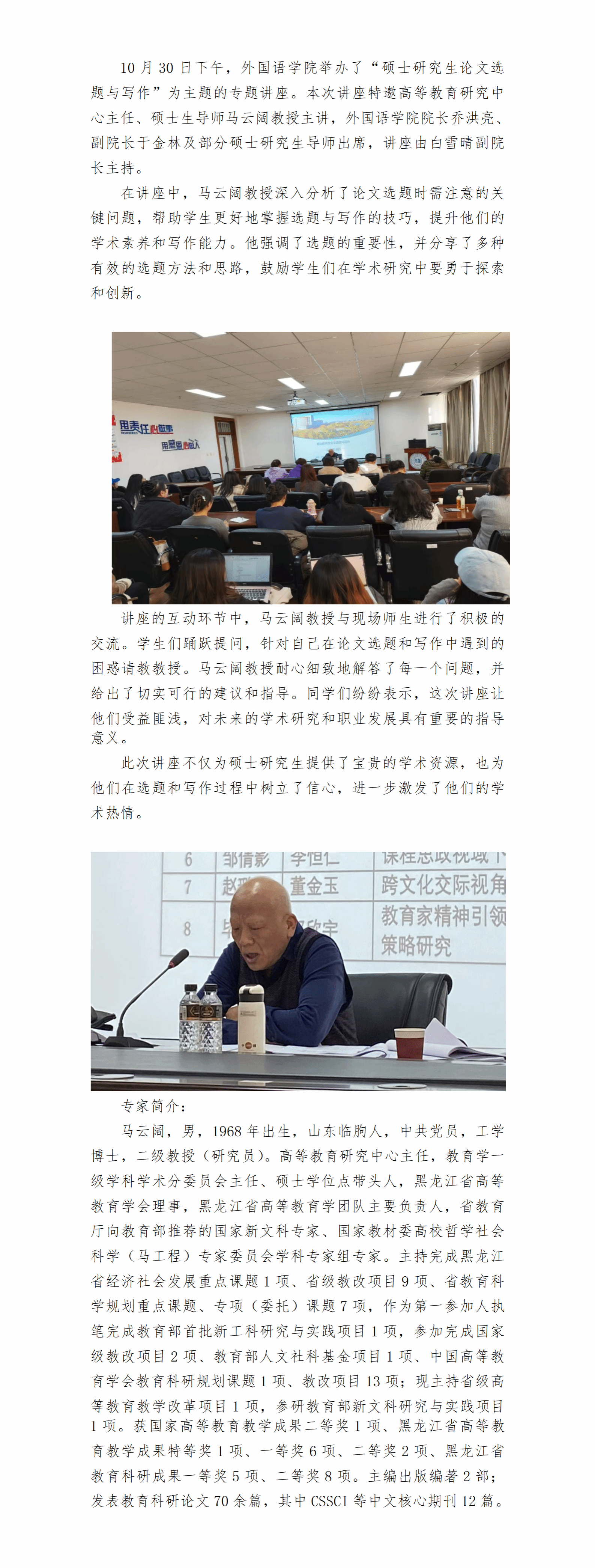 高等教育研究中心主任马云阔教授作《硕士研究生论文选题与写作》专题讲座