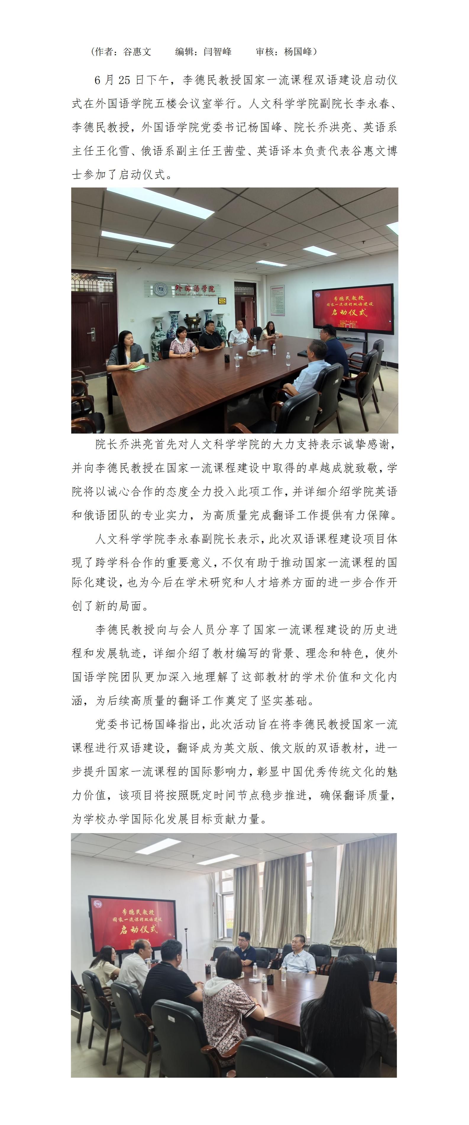 15vip太阳城集团官网举办李德民教授 国家一流课程双语建设启动仪式
