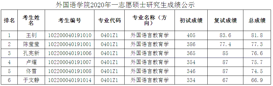 15vip太阳城集团官网2020年一志愿硕士研究生成绩公示