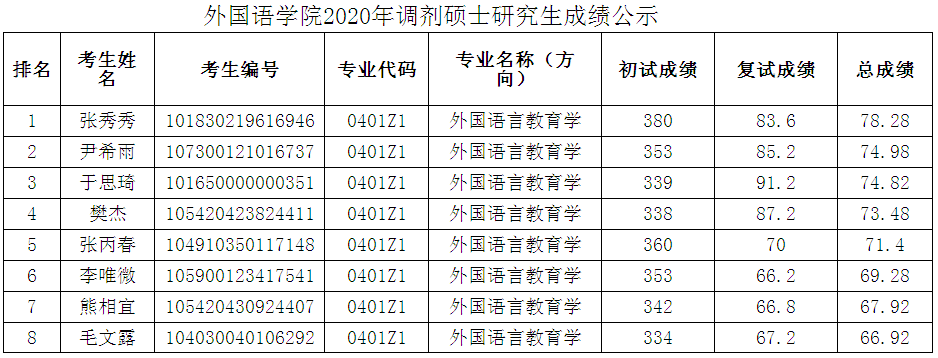 15vip太阳城集团官网2020年调剂硕士研究生成绩公示