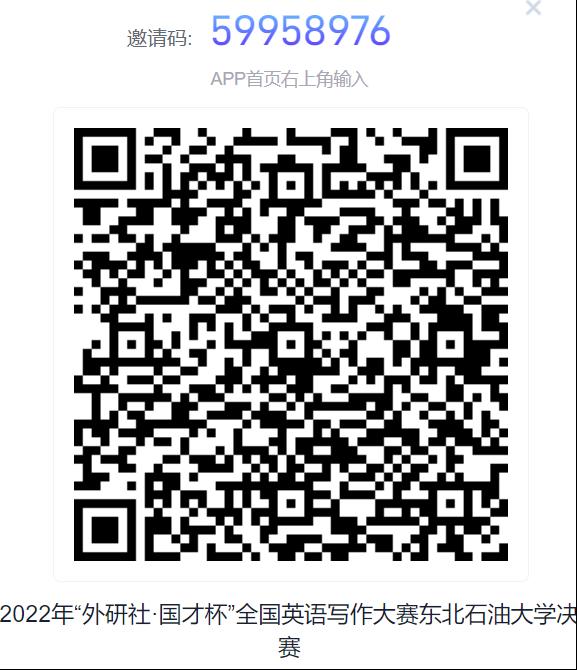 1. 请于10月6日前加入学习通中“2022年“外研社·国才杯”全国英语写作大赛15vip太阳城集团官网决赛”课程群,该群二维码在通知结尾处,比赛时会提前5分钟在学习通发放试卷。入群时要备注自己的真实姓名+专业。