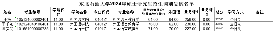 15vip太阳城集团官网2024年硕士研究生招生调剂复试名单