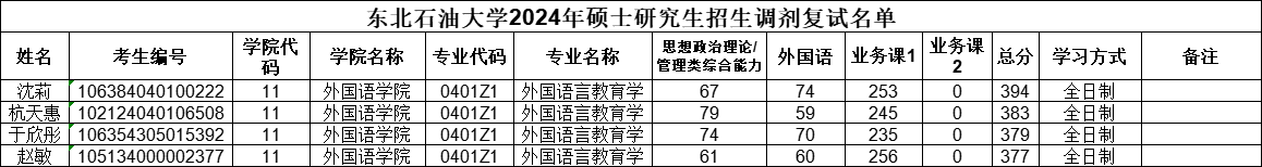 第一批调剂 15vip太阳城集团官网2024年硕士研究生调剂成绩公示