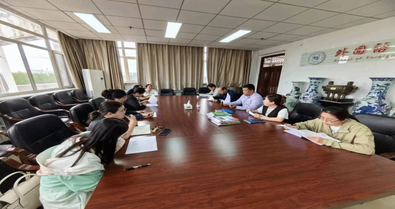 根据教务处《关于开展2024年秋季学期教师选用本科生教材、征订教师用书及本科生预定教材工作的通知》,2024年6月24日下午2点在1A536召开外国语学院2024年秋季学期教材选用审查会议,会议由教学院长于金林主持,教材审查领导小组成员党委书记杨国峰、院长乔洪亮;学术委员会成员郭敏、闫智峰、曲爽;各教系部主任赵浩宇、张琳、张瑜、王茜莹、鹿晓芳参会。