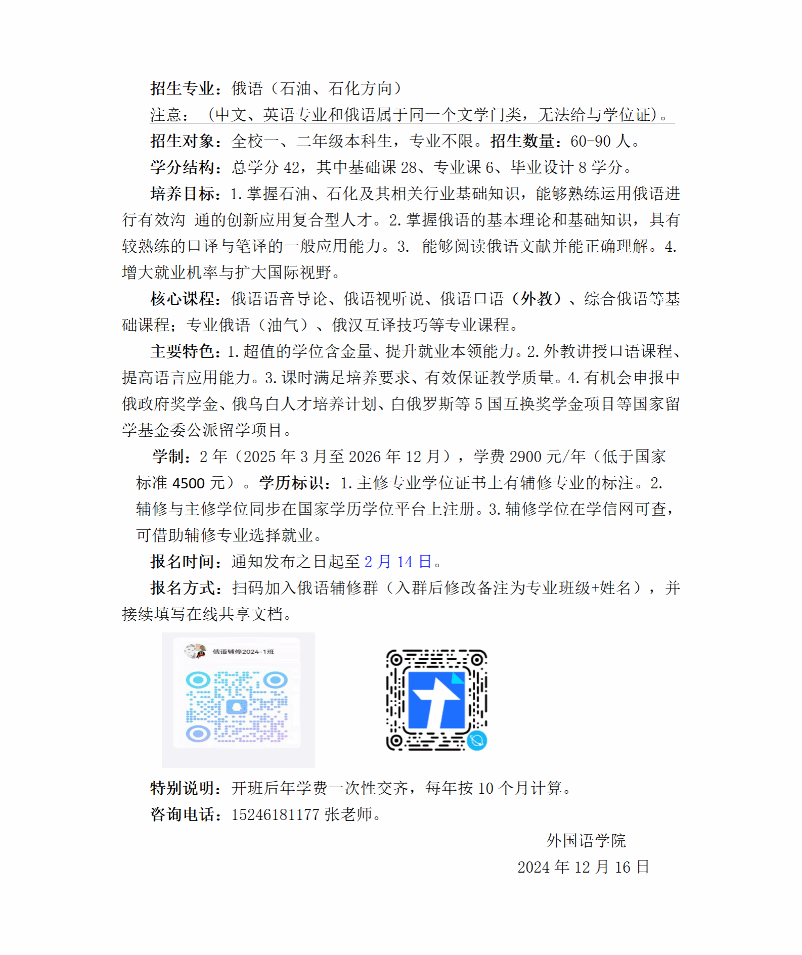 15vip太阳城集团官网 俄语辅修专业招生简章