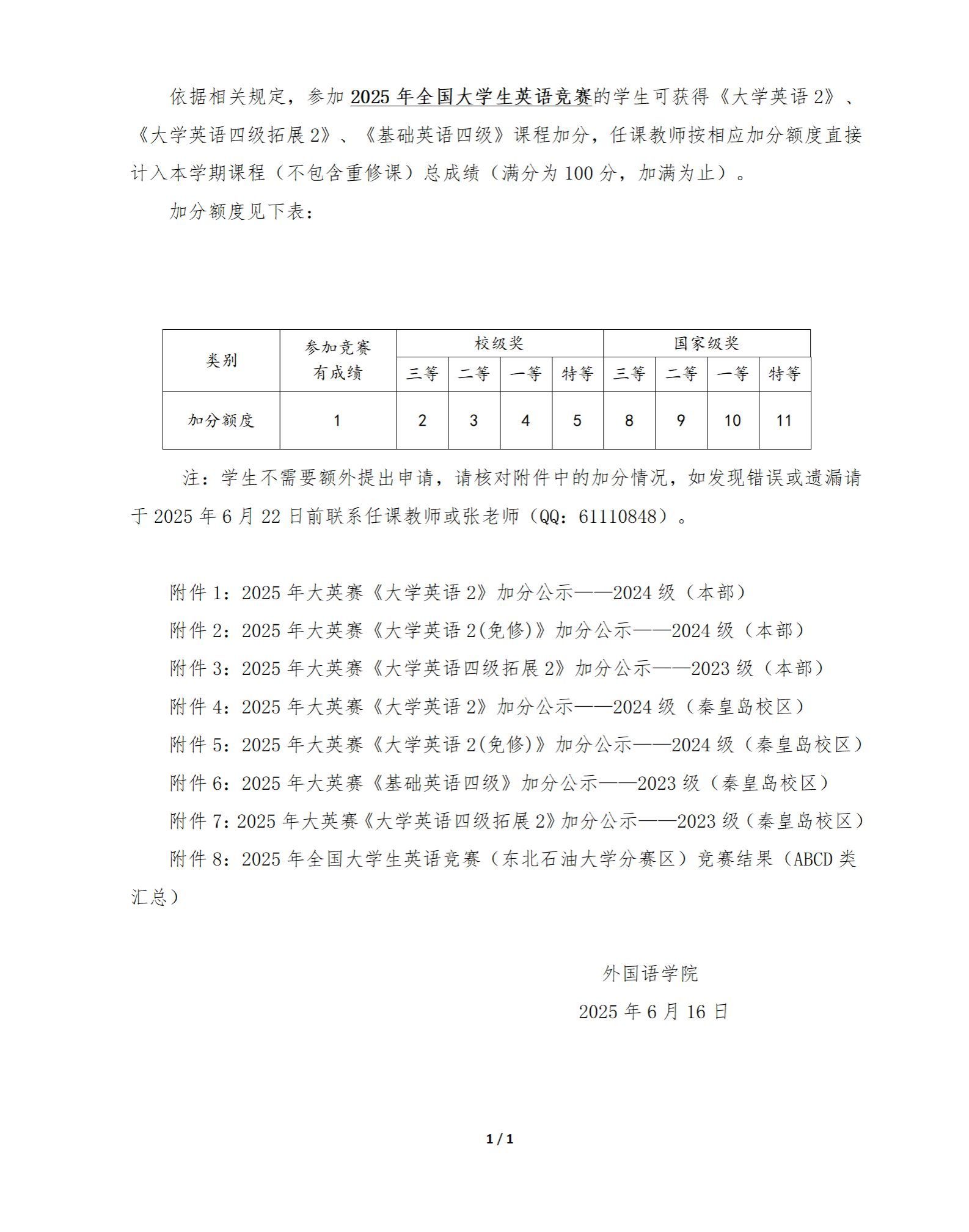 附件4:2025年大英赛《大学英语2》加分公示——2024级(秦皇岛校区).pdf
