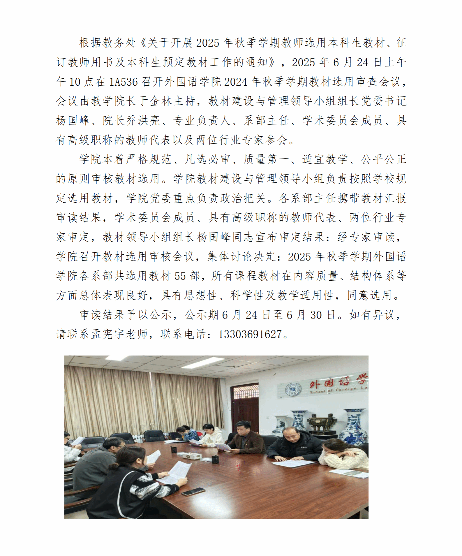 2025年秋季学期15vip太阳城集团官网教材审读结果公告